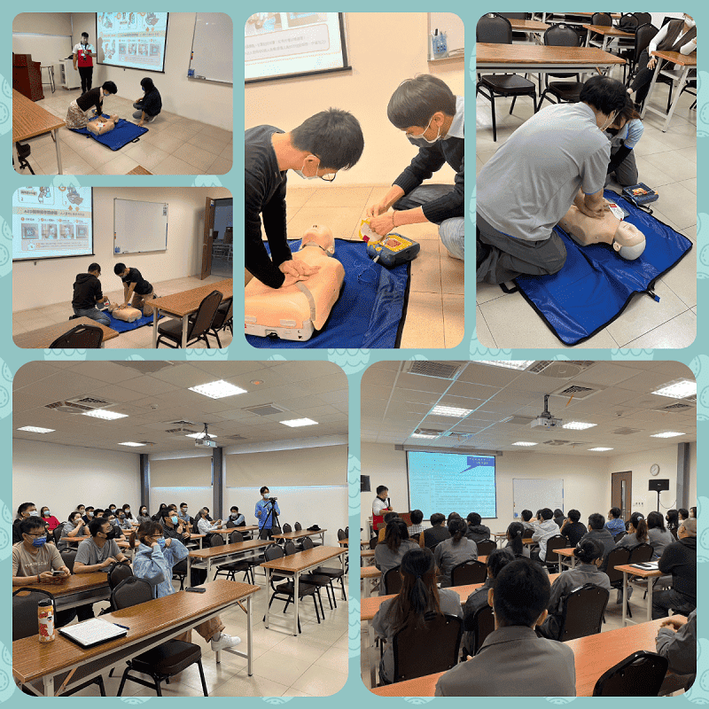 Every three years, UMT conducts CPR + AED trainings, in which our staff is instructed the basic knowledge about first aid, hoping they would be able to assist when accidents happen no matter inside UMT or outside on the streets.