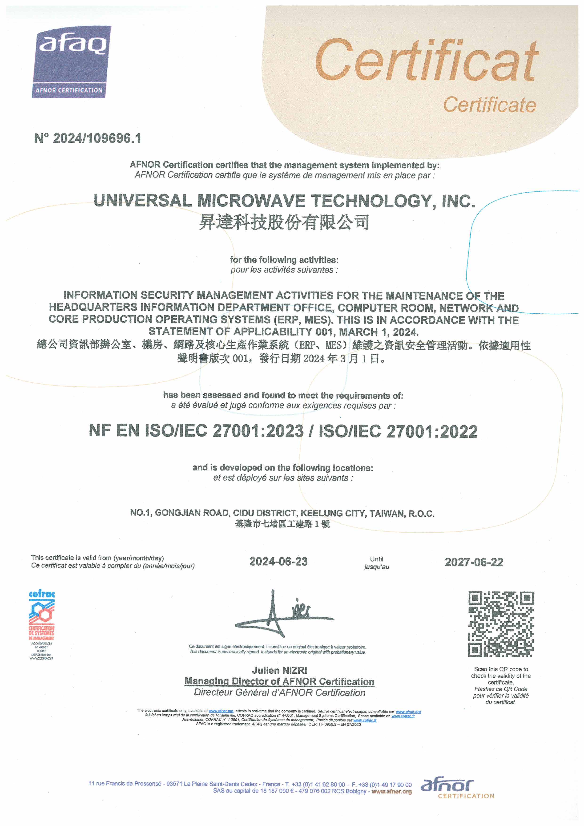 ISO 27001 is one of the most authoritative Information Security Management System in the world. Based on the principles of sustainable development and commitment to customers’ information security, we started to introduce the ISO 27001 system into our operations on March, 2024; passing the verification in June and obtaining the official certificate recently.