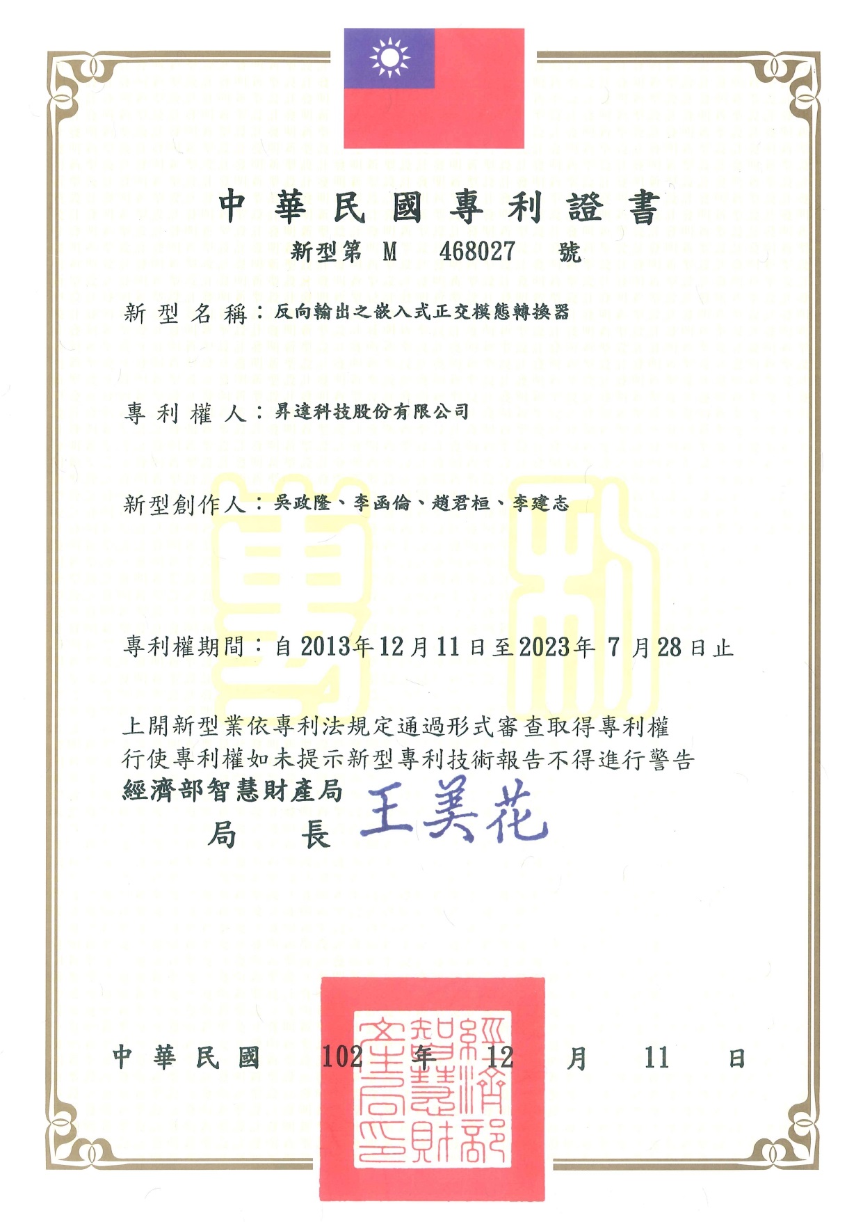 UMT Obtains "Reverse-Direction Embedded Orthomode Transducer (OMT)" Patent in Taiwan.