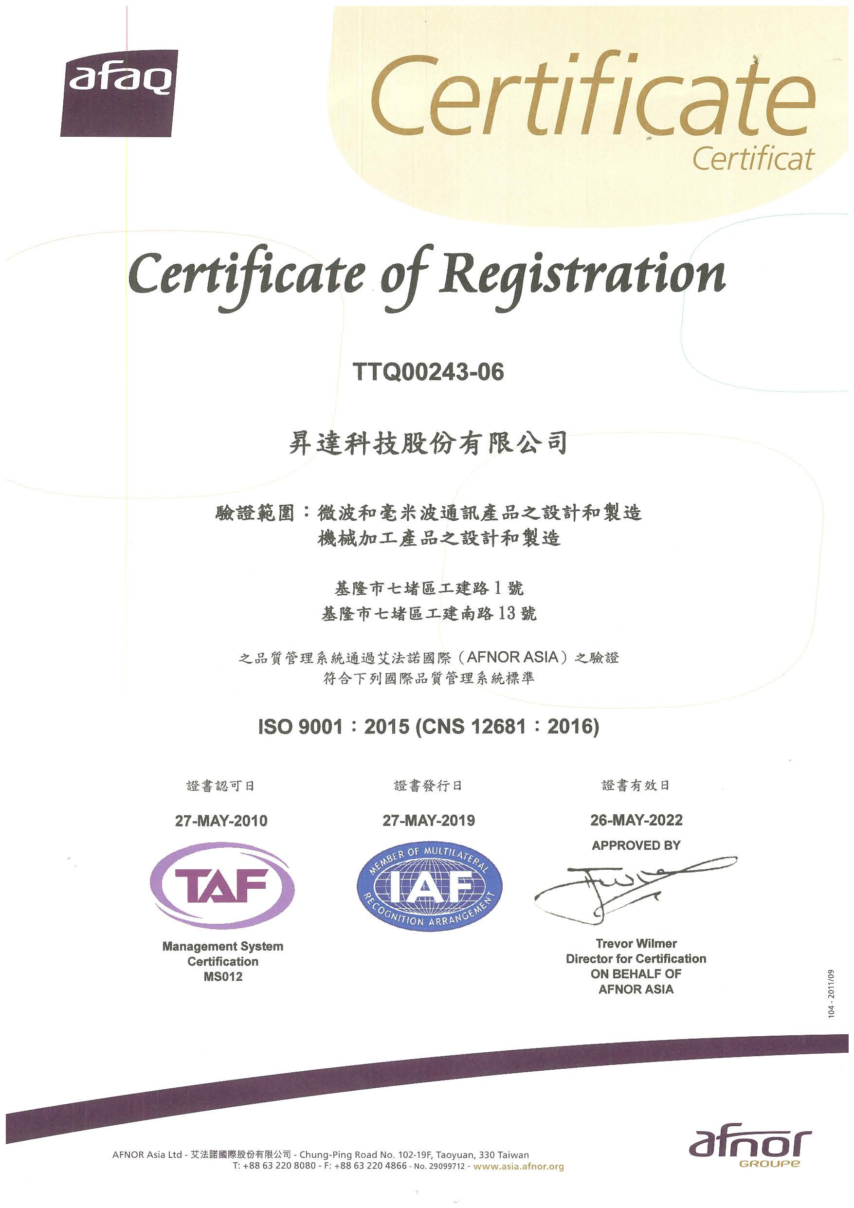 Obtained ISO 9001 Quality Management System Certification (v. 2015)
