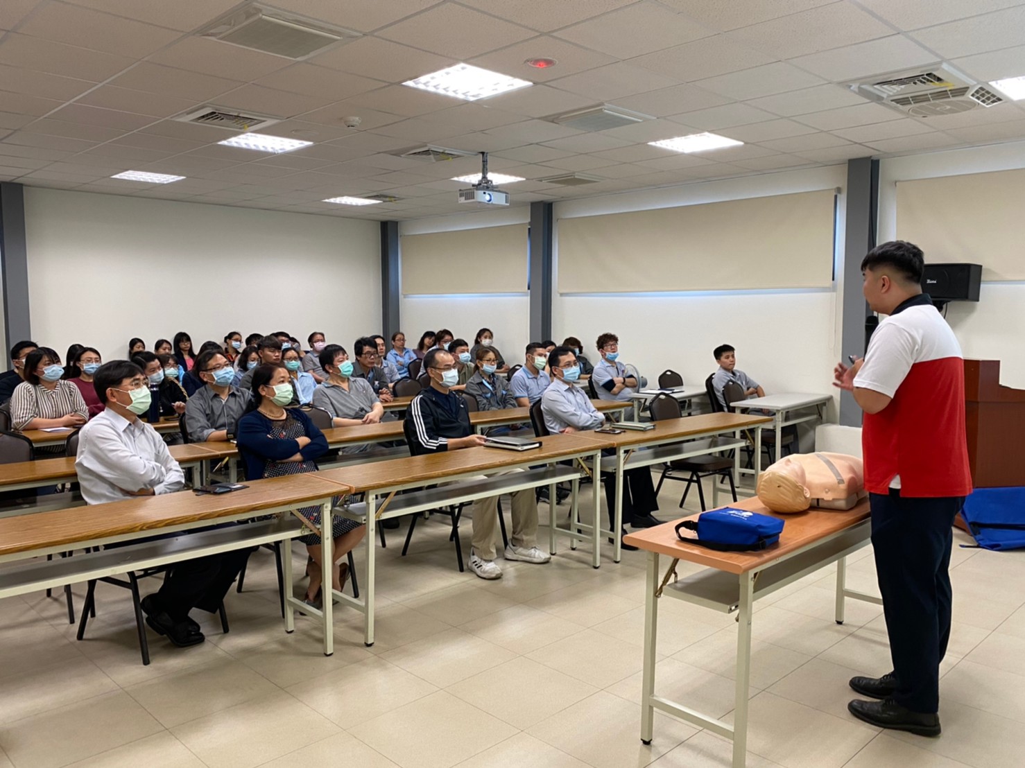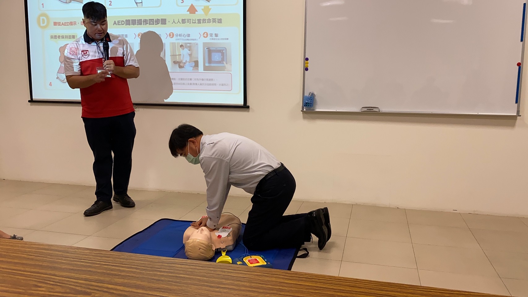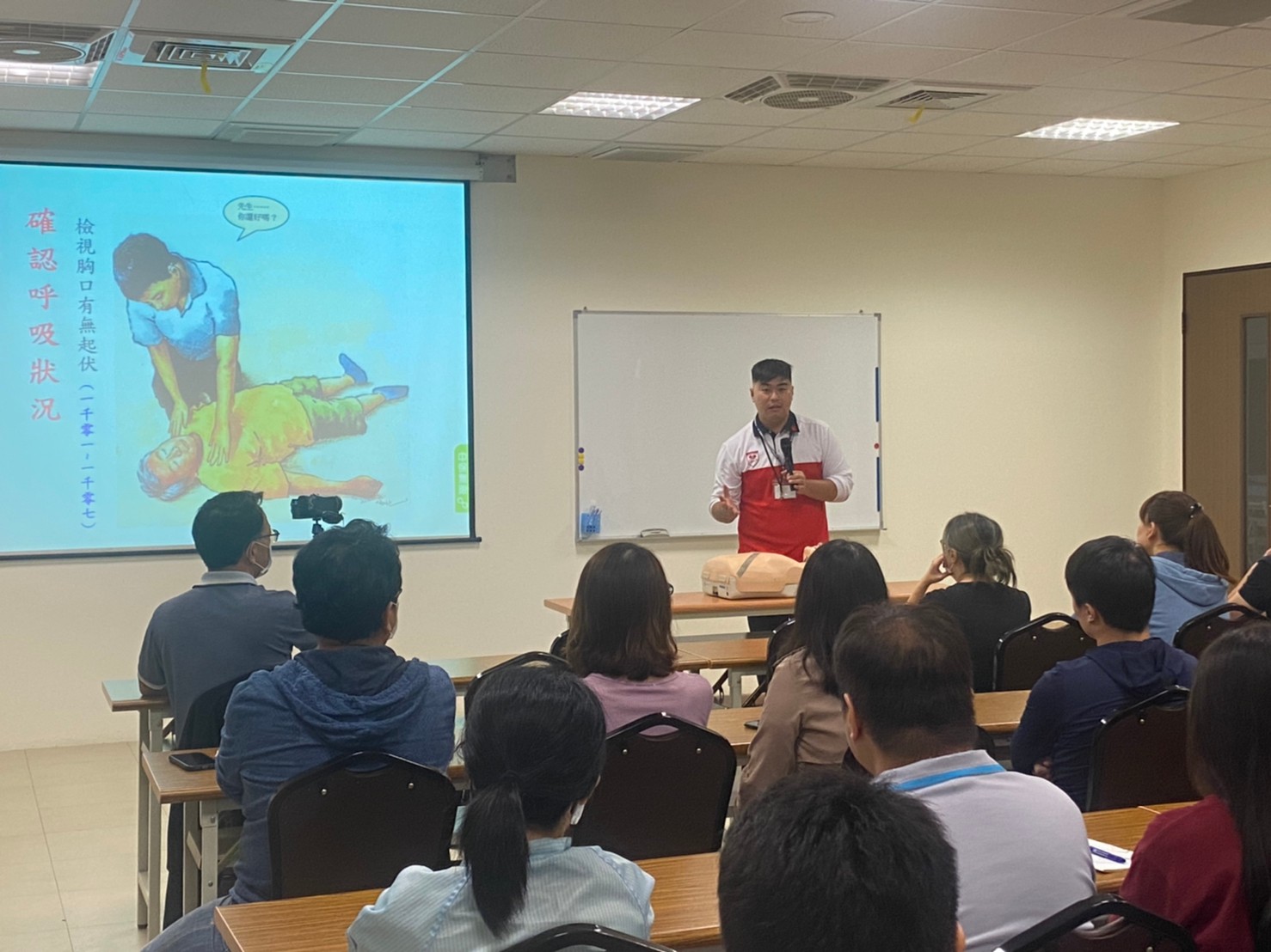 In order to enhace the basic first aid knowledge of all our staff to create a safe and friendly working environment, UMT has launched the "CPR Basic First Aid Skills and AED Operation" training.